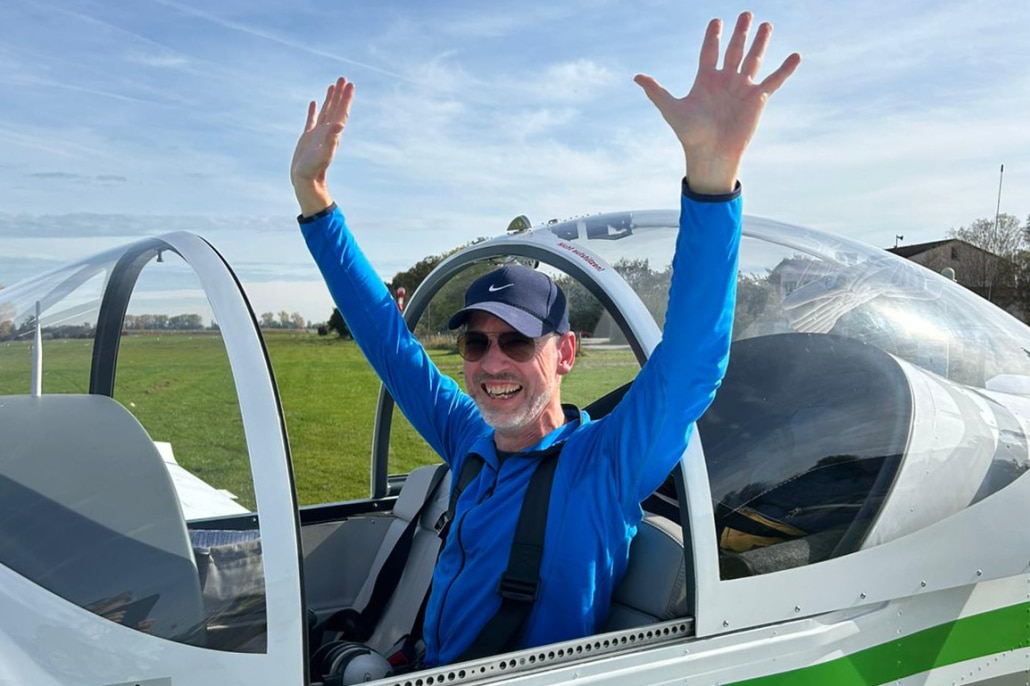 Am Dienstag bei bestem Herbstwetter war es soweit. Unser Flugschüler Falk hatte seinen ersten Solo-Flug! Und es war nicht nur einer, sondern gleich sechs Sololandungen legte er hin. Strahlend stieg er aus der Breezer. Herzlichen Glückwunsch, lieber Falk!